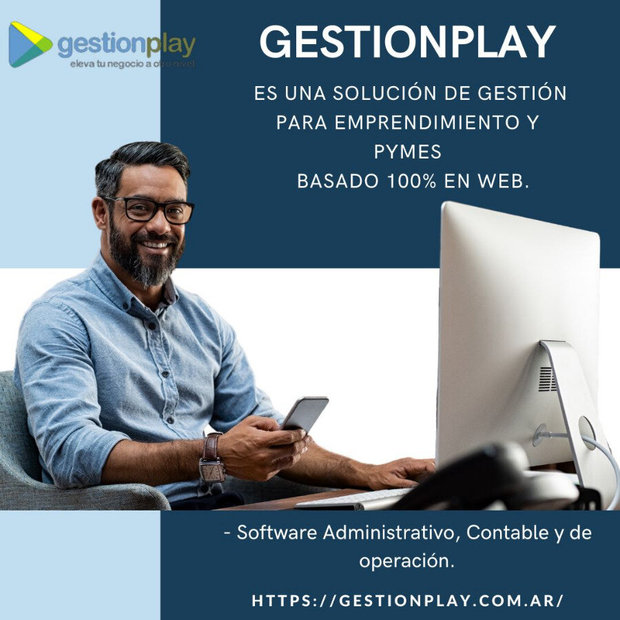 *GestionPlay es una solución de gestión para Pymes elegida por más de 350 empresas muy simple y fácil de usar. Sin requerimientos de instalación, permite a los distintos usuarios y sucursales de una empresa o emprendimiento trabajar desde cualquier PC, tablet o teléfono con conexión a internet. GestionPlay es un Software Administrativo, Contable y de operación Puntos de Venta basado 100% en web distinto a cualquiera de las soluciones actuales de mercado. Un innovador diseño de la interfaz gráfica lo transforma en el Software ERP más sencillo y fácil de usar, haciendo que la gestión sea simple, permitiendo lograr resultados a corto plazo. Te recomendamos visitar nuestro sitio WEB GESTIONPLAY, donde podrás encontrar más información y solicitar un Demo.3515106772