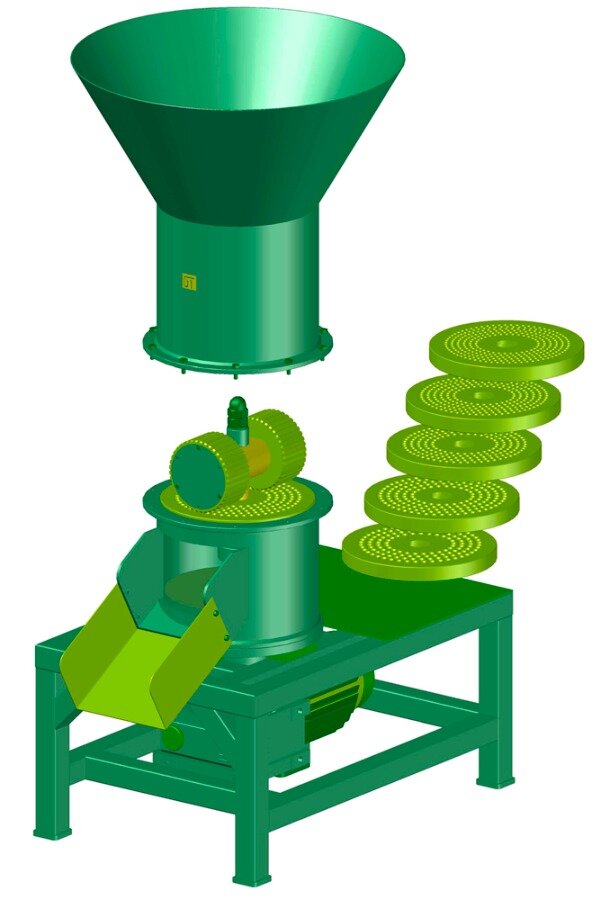 Se venden solo los planos completos para fabricar el equipo Pelletizadora. Incluye planos de diferentes matrices con perforados de diámetro 3, 4, 5, 6, 7 y 8 milímetros.