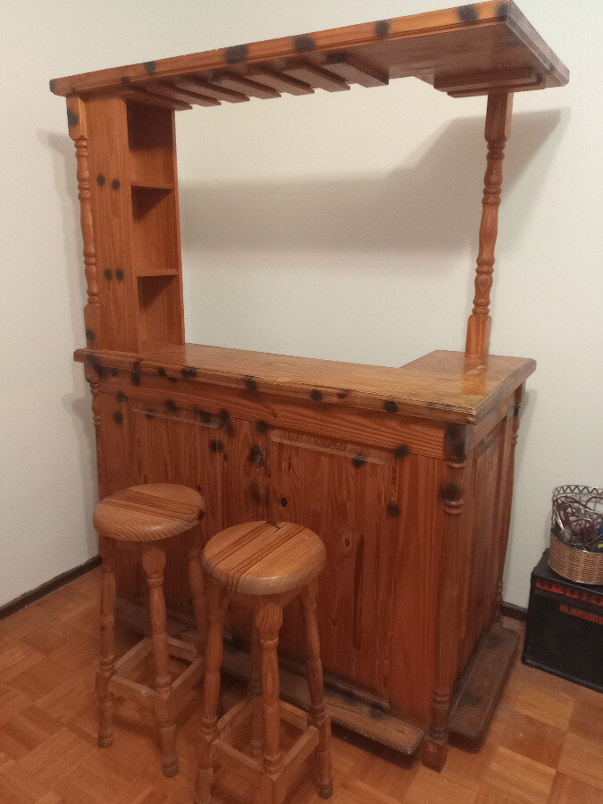 Barra Bar en L para casa o depto, material: madera – de pino macizo.